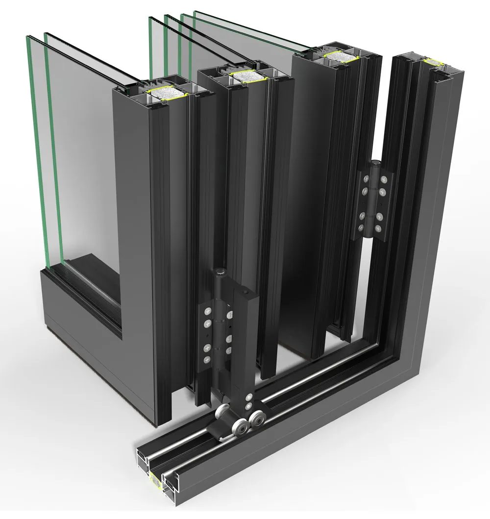 Κύλιση των φύλλων στον κάτω οδηγό.- Δυνατότητα κατασκευής μονών και ζυγών φύλλων σε οποιοδήποτε συνδυασμό.
